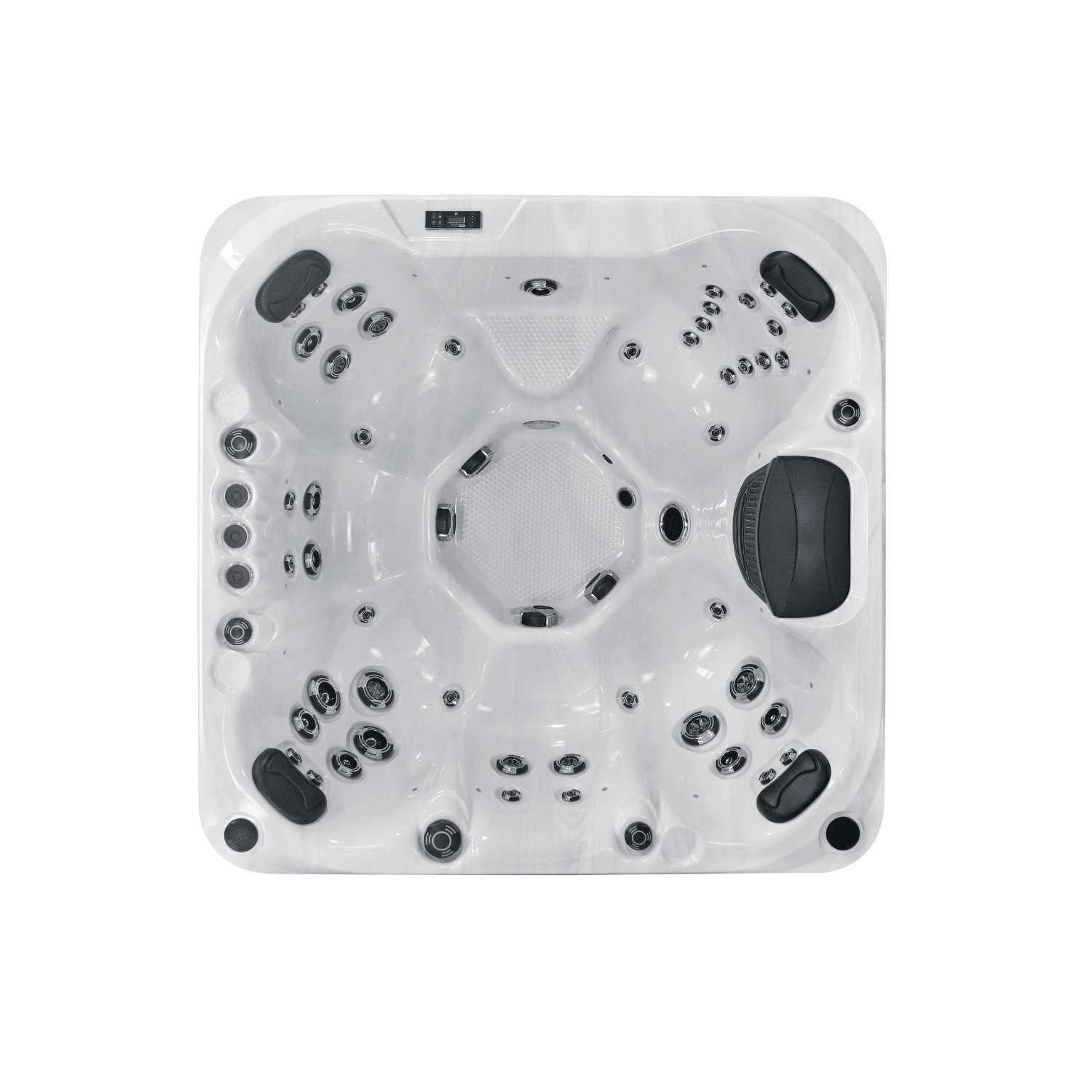 luxurious Seville hot tub comes with a choice of three shell colours, including Sterling Silver, Midnight Canyon, and Odyssey. With a total of 48 jets and an array of formations, it offers a relaxing and invigorating spa experience.